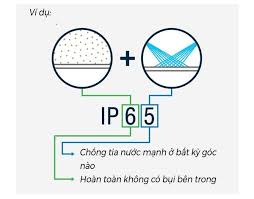 Như đã thấy ở trên, một thiết bị được đánh giá theo tiêu chuẩn IP65, sẽ hoàn toàn chống bụi và có thể ngăn chặn sự xâm nhập của nước đối với các tia nước.