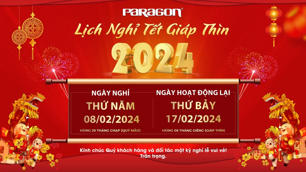 Paragon trân trọng thông báo đến Quý khách hàng và Quý đối tác thời gian nghỉ Tết Nguyên Đán 2024